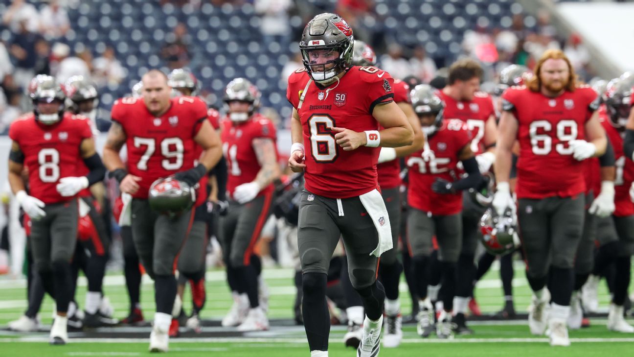 How they navigate that with dwindling numbers — and you can throw in rookie Emeka Egbuka, who is now dealing with a groin/hip injury, forcing him to miss practice this week and leaving his status unknown for Sunday — will certainly say a lot about how far Mayfield and this team can go this season.